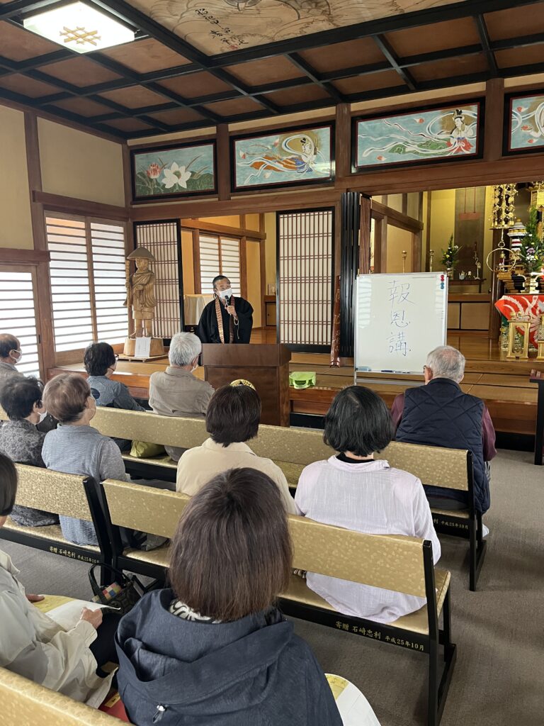 本年度は岩見明師(蓮慶寺住職)をお招きしご法話をいただき、法要ではご法中のみなさまにご参勤いただき、みなさまのおかげをもちまして本年度報恩講も滞りなく厳修されました。